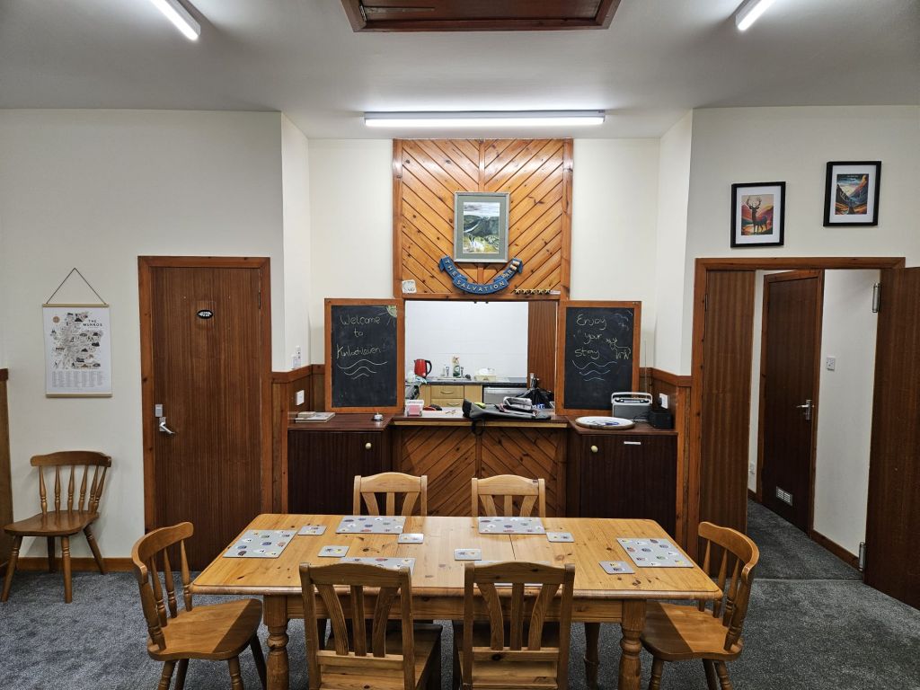 Na Gruagaichean is a cosy and comfortable space to enjoy some time off your feet after a days walking. The property used to be the Salvation Army Hall for the village, and has been sympathetically restored to provide a large living/dining area at one end, and a sleeping area to the other containing three bedrooms capable of sleeping up to 10 guests. These are linked by a hallway containing a kitchen, two bathrooms and a utility room (containing a washing machine and tumble dryer if you need anything to be washed/dried).